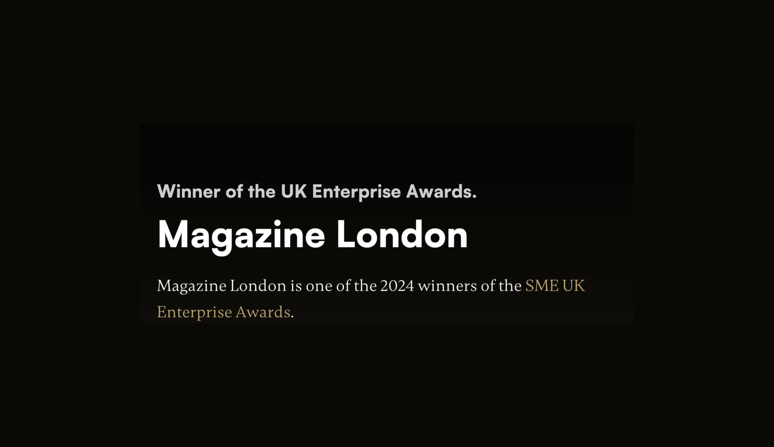 We’re excited to share that Magazine London has been recognized as a winner in the UK Enterprise Awards 2024 by SME News. This award highlights our ongoing commitment to innovation, excellence, and the unforgettable experiences we create within our iconic hybrid event space.